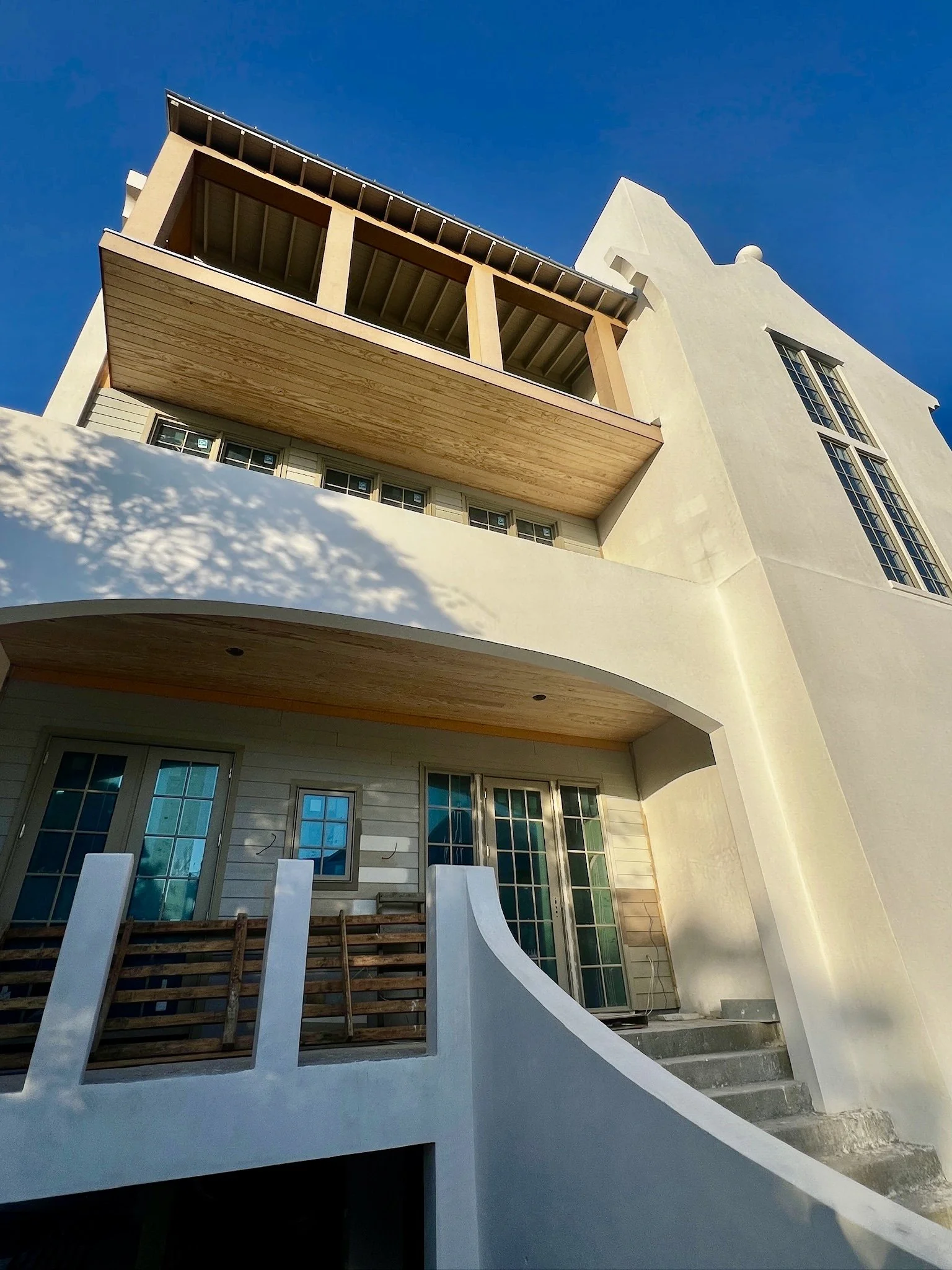 We are proud to present our latest three-story modern Bahamian home, blending timeless elegance with contemporary design. Featuring smooth finished walls and ceilings, highlighted by rich pecky cypress accents and sleek clad casement windows, this home exemplifies quality and style. The minimalist approach ensures both durability and sophistication, creating an inspirational and enduring space. Below, you will find a gallery showcasing its construction.